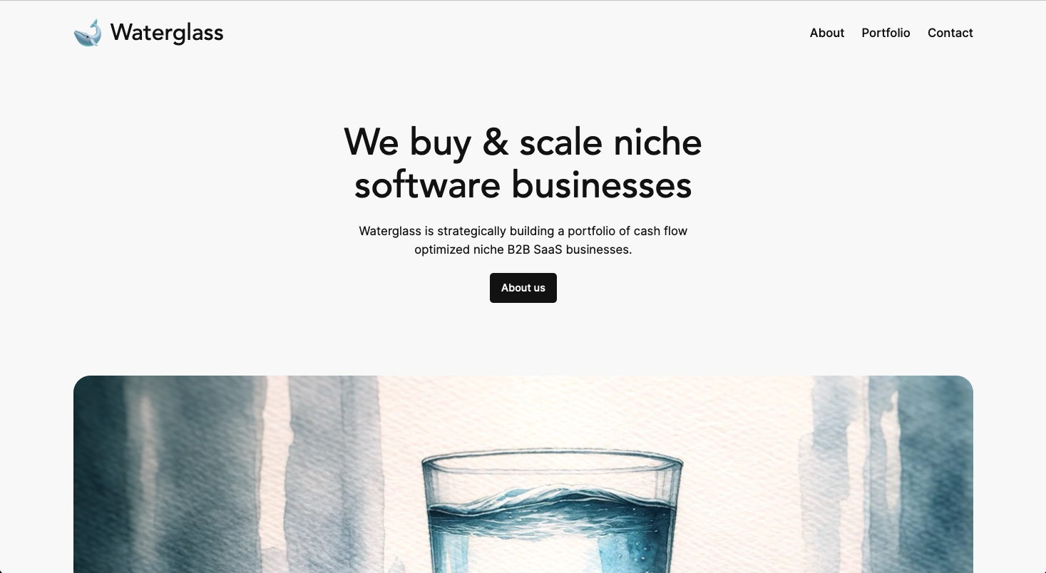 Waterglass is a 'micro PE' fund that builds a self-sustaining portfolio of cash flow optimized B2B SaaS businesses. The goal is to acquire niche businesses that solve relevant problems for business customers.