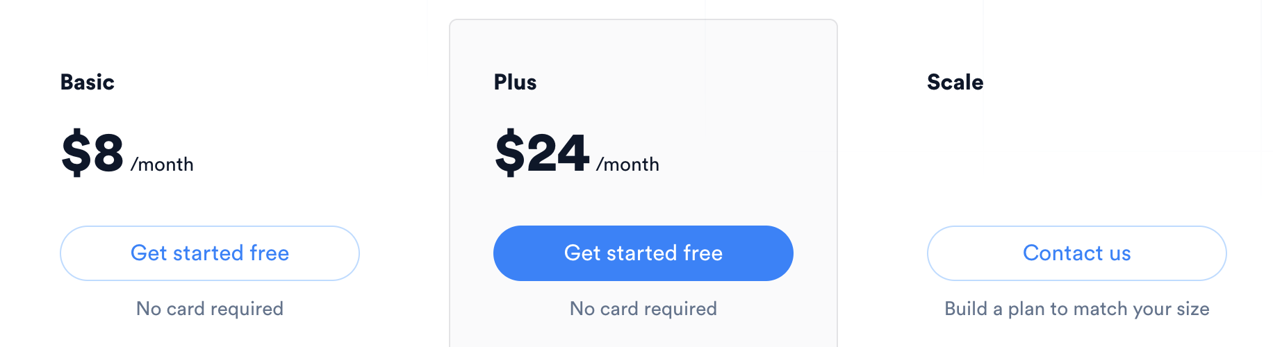 | Base plan ($5 / mo.) | Add-ons ($10 / mo. each) |