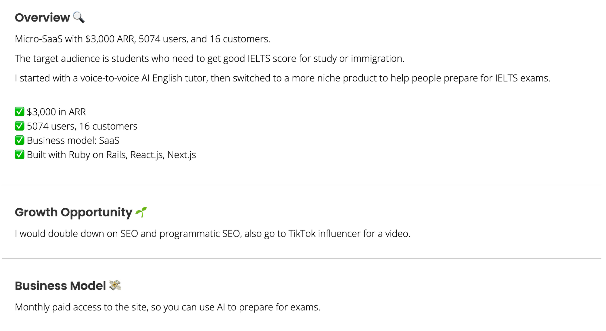 What many underestimate is just how many projects are up for sale and fall under the acquisition profile above, because the founders have two or more side projects and want to focus on either of them.