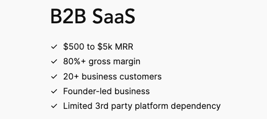 The acquisition profile you see above will grow over time, especially the minimum MRR requirements, which are oftentimes closely connected the sales price.